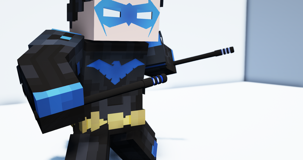 This pack includes 3 Nightwing and Batman themed models that fit the character Model. The items include, The Grapnel Gun (Arkham origins design), Nightwing's escrima stick, and his batarang like weapons known as Wing Dings.